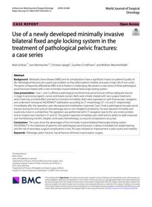 Unthan M, Marintschev I, Spiegel C, Hofmann GO, Weschenfelder W. Use of a newly developed minimally invasive bilateral fixed angle locking system in the treatment of pathological pelvic fractures: a case series. World J Surg Oncol. 2024 Oct 8;22(1):266. doi:10.1186/s12957-024-03551-x.